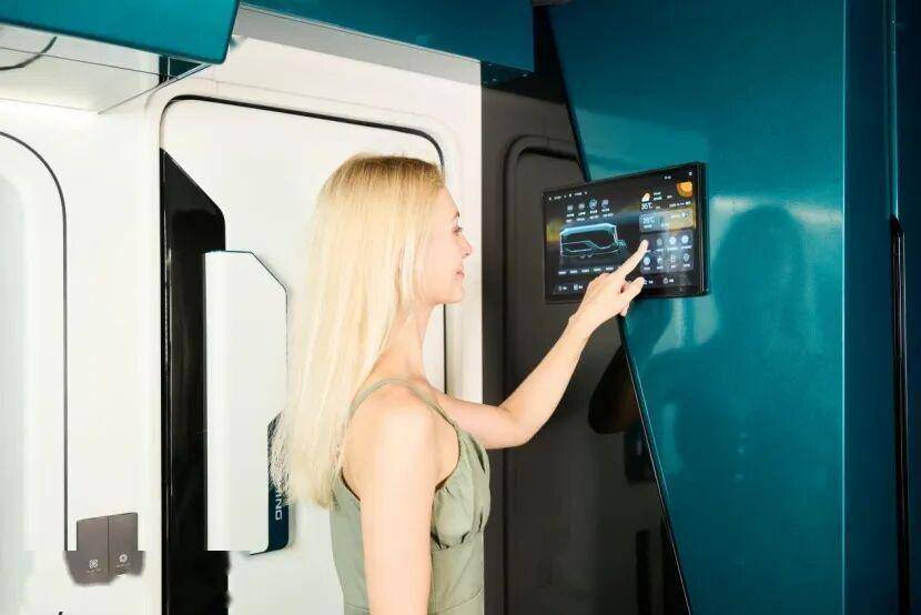此外还包括智能控制与能源管理系统,传统房车的水、电、能源与设备控制是系统割裂的,而我们高度集成的一体化智慧中枢,打破了过去各系统独立的局限,能实现水、电、设备及能源的协同管理与优化,并基于车辆状态进行主动预警。